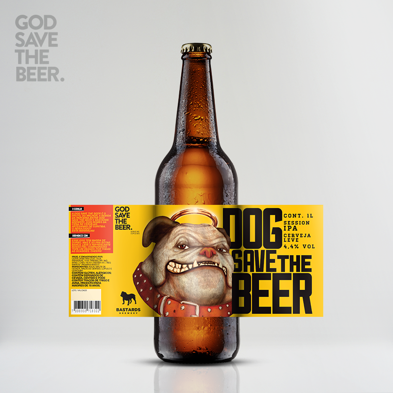 O rótulo da Dog Save The Beer é um destaque a parte. Seguindo a linha da proposta dos rótulos da Bastards Brewery, em que cada cerveja possui um personagem estampado no rótulo, neste, a linguagem assume as personalidades de ambas as marcas de um jeito cool, irreverente e bem humorado. O personagem da Dog é um cachorrinho que carrega essa dupla personalidade. Numa perspectiva, tem um lado angelical, com auréola e tudo – as meninas o chamam de “fofo” –, já seu outro lado é profano, com cara de cachorro marrento, do tipo empinado de academia que sai por aí de peito estufado, se achando. Mas o que importa é como você o vê. Seria ele o anjo ou o cão?